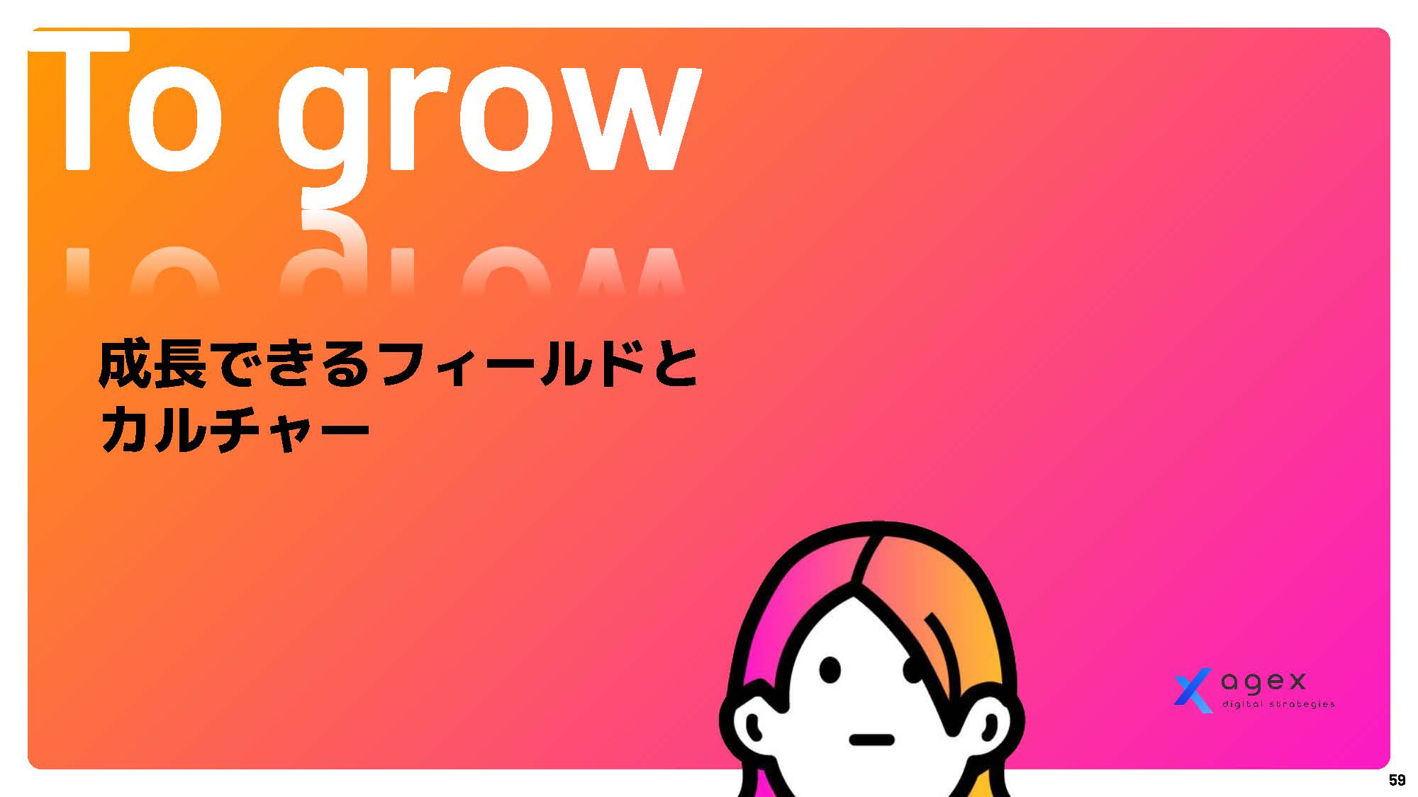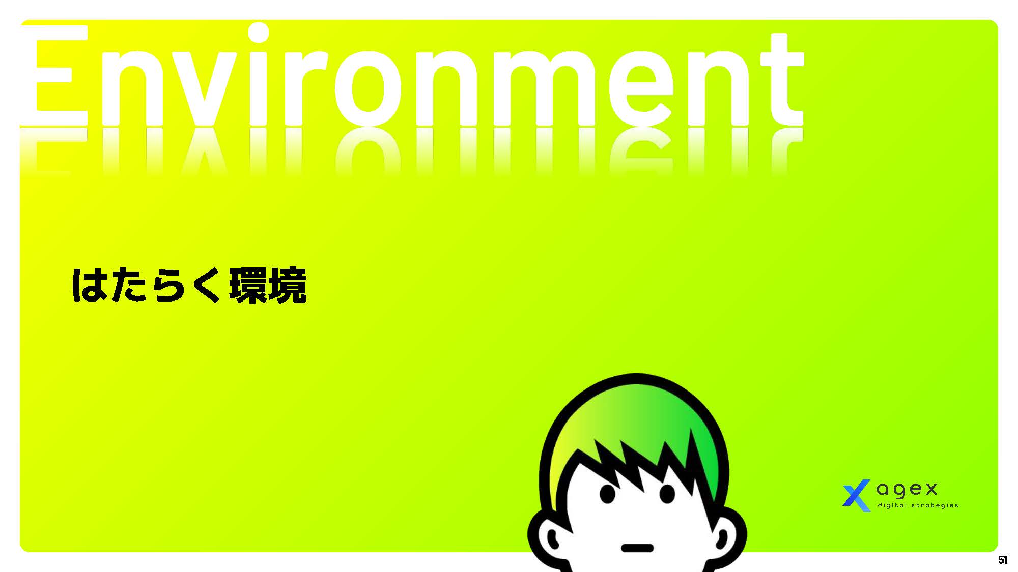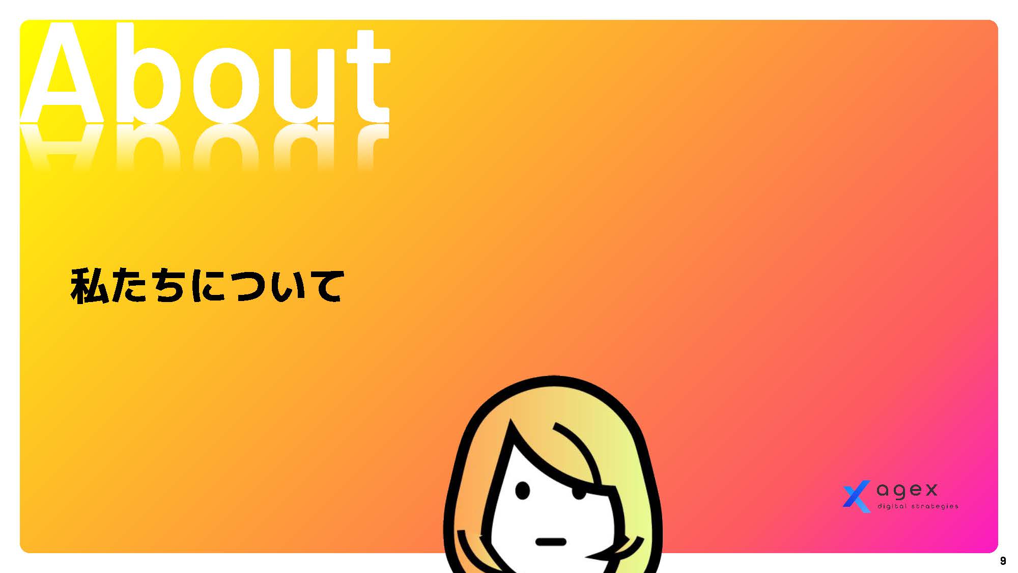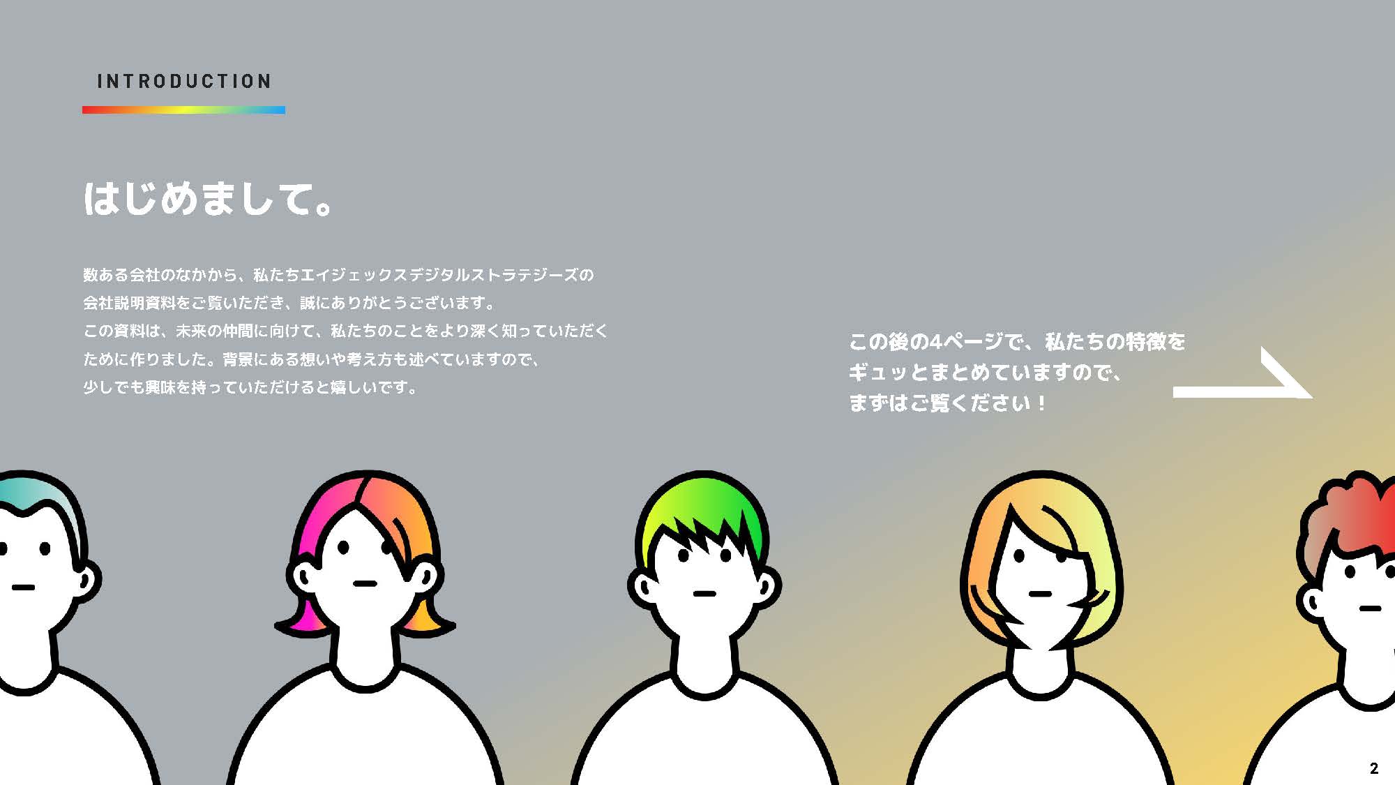 まずはこちらの資料をご覧ください。 エイジェックスデジタルストラテジーズの価値観、大切にしているもの、目指すところをまとめたスライドです。