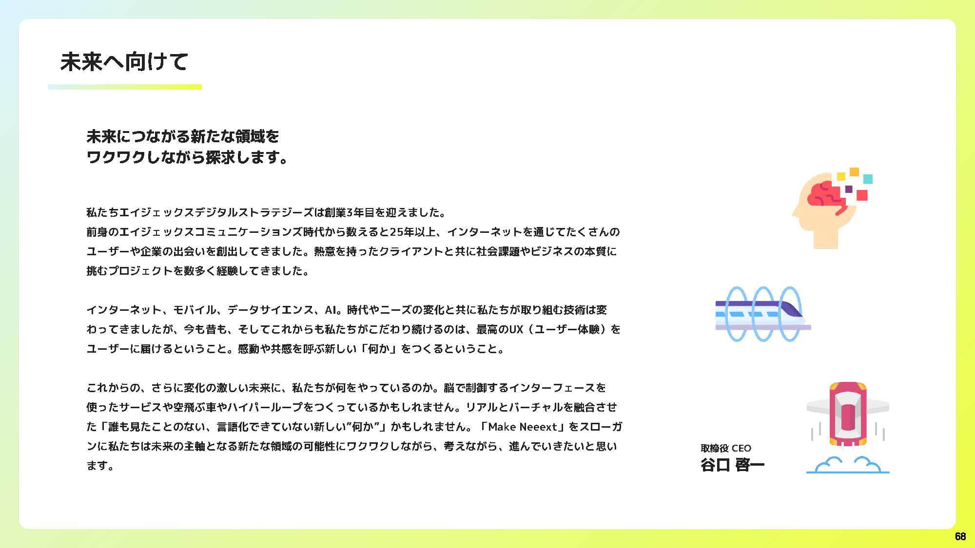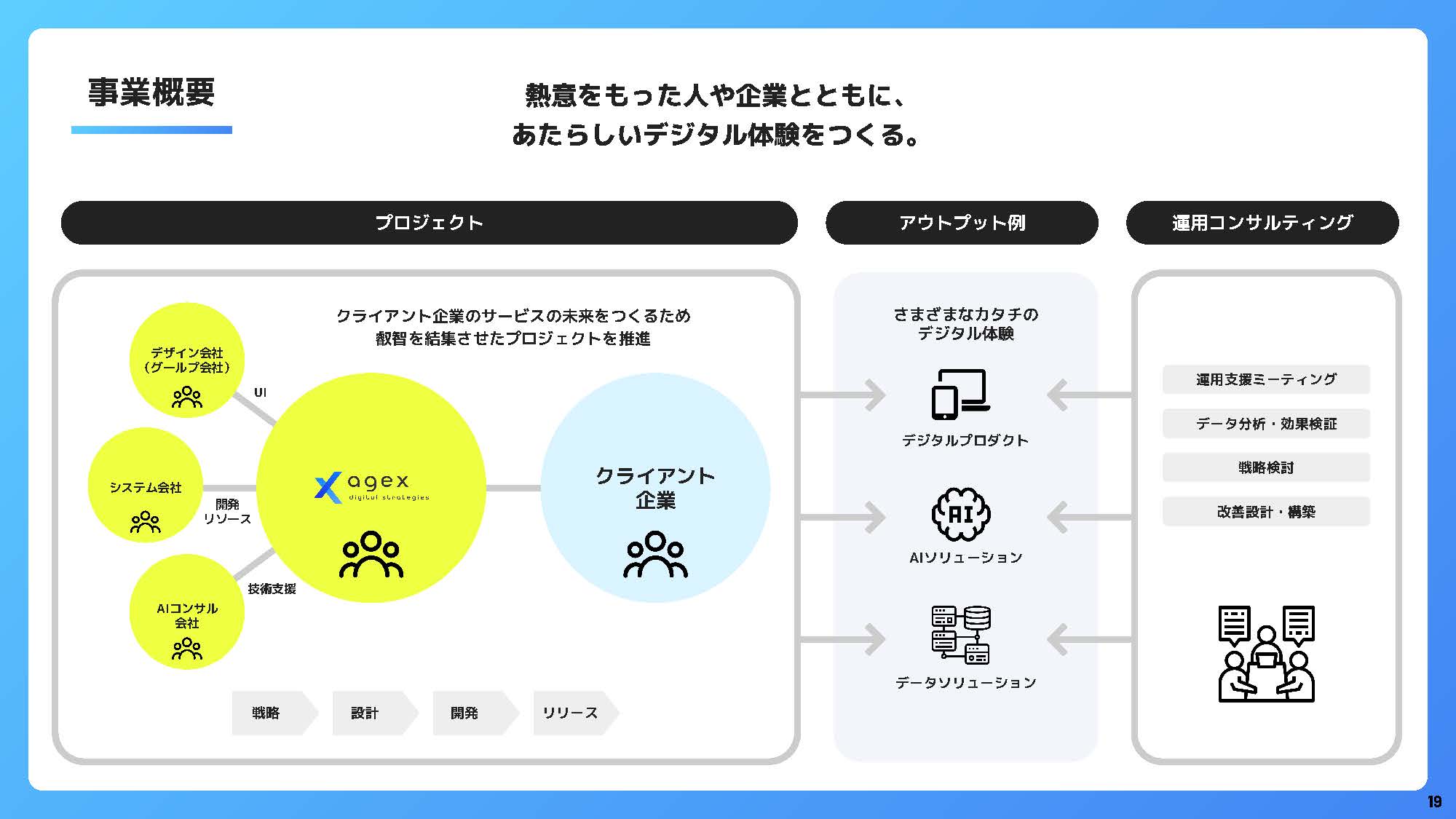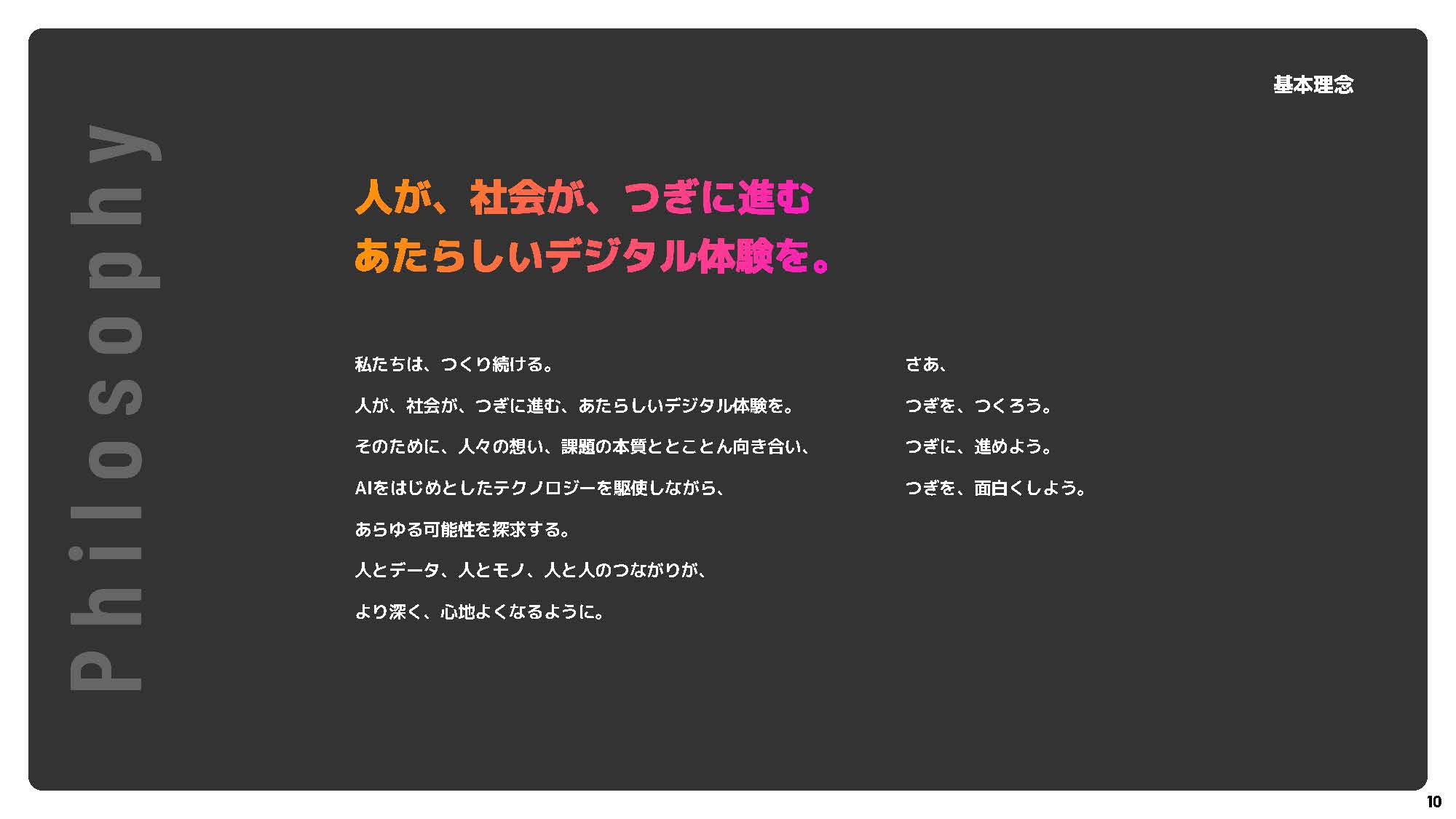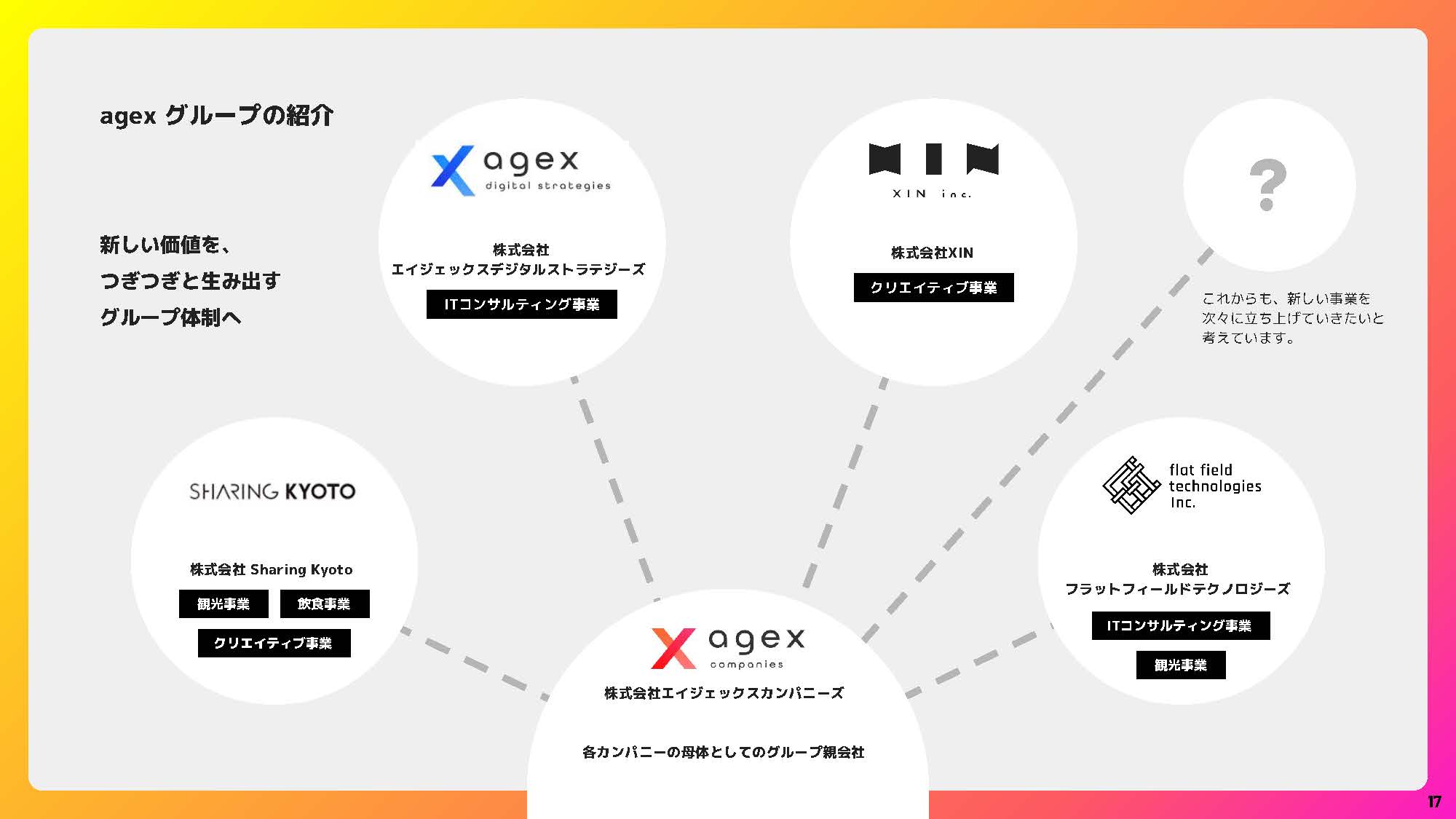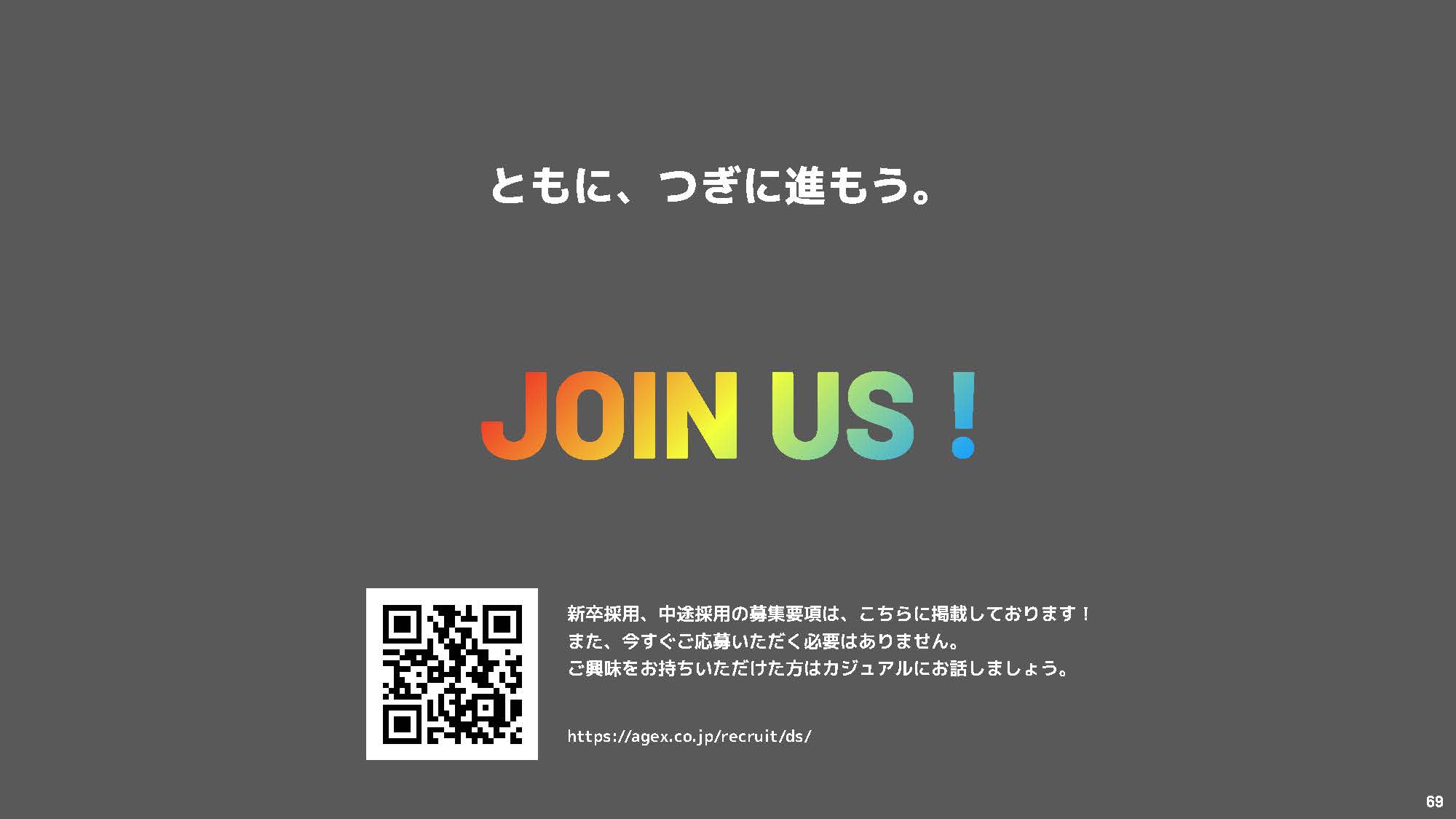 まずはこちらの資料をご覧ください。 エイジェックスデジタルストラテジーズの価値観、大切にしているもの、目指すところをまとめたスライドです。