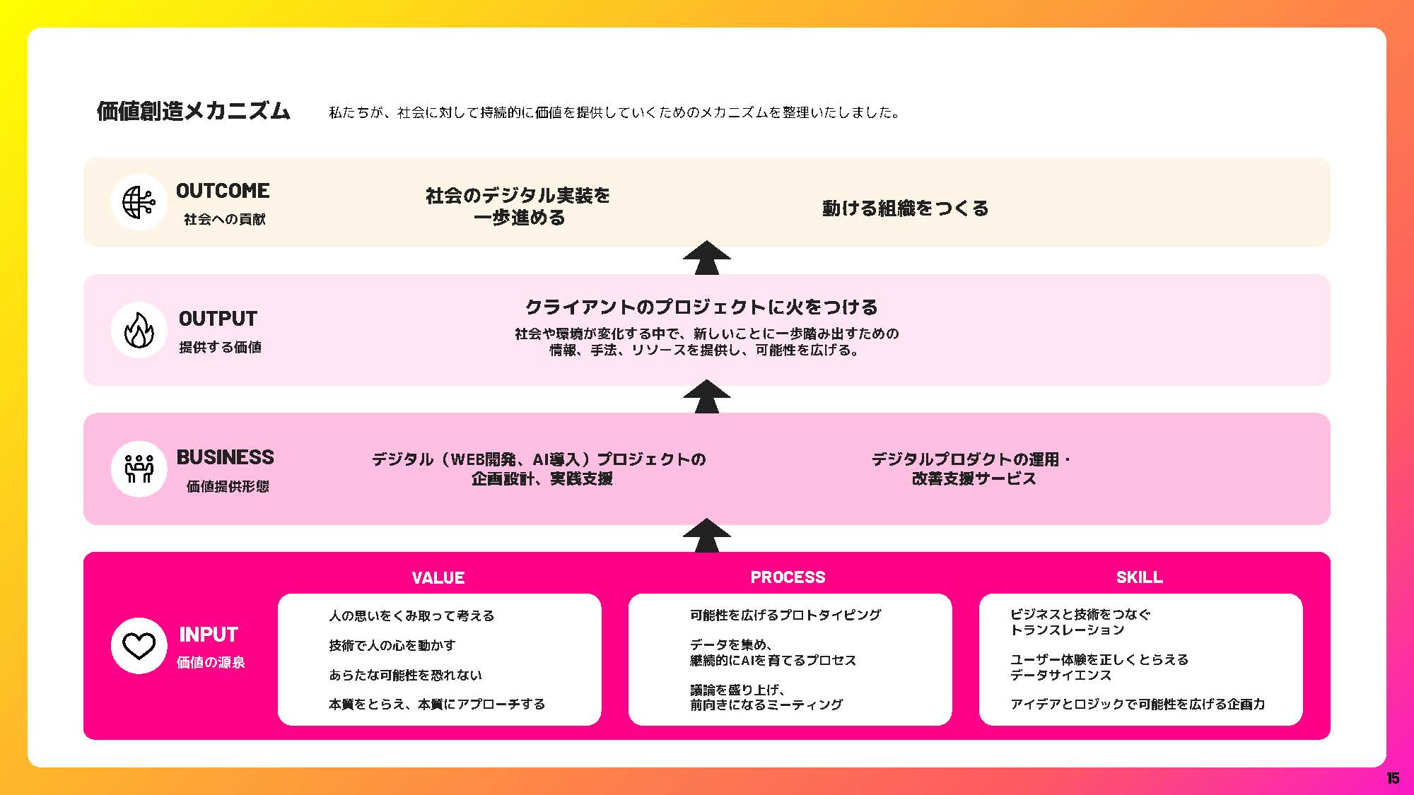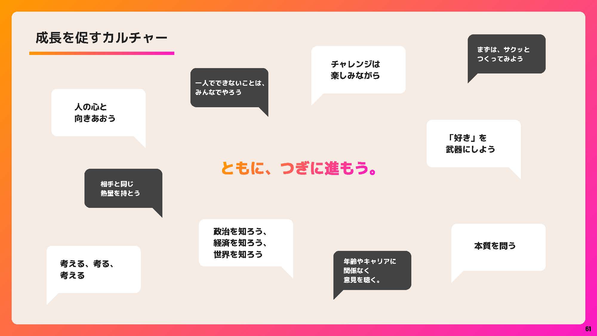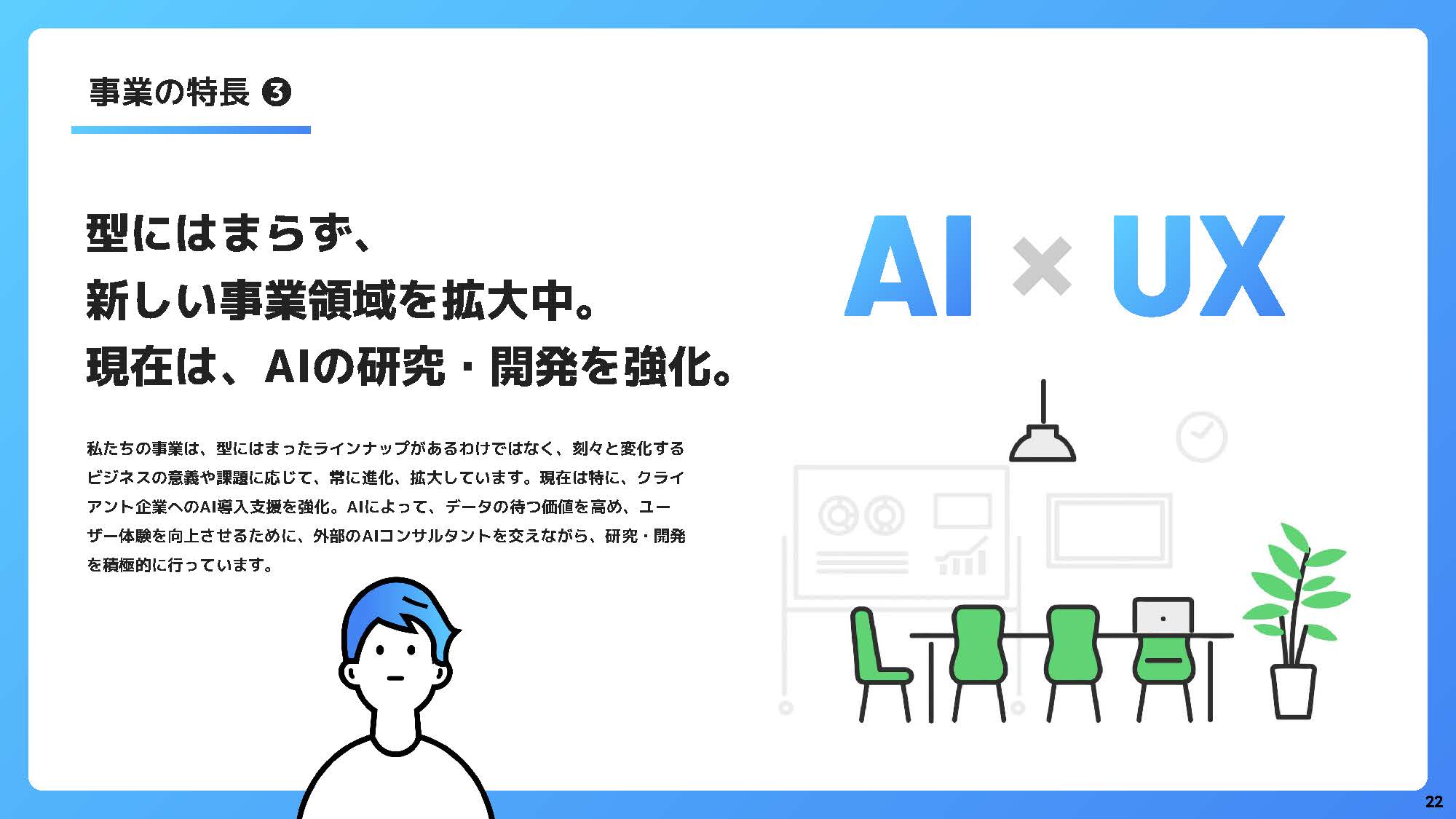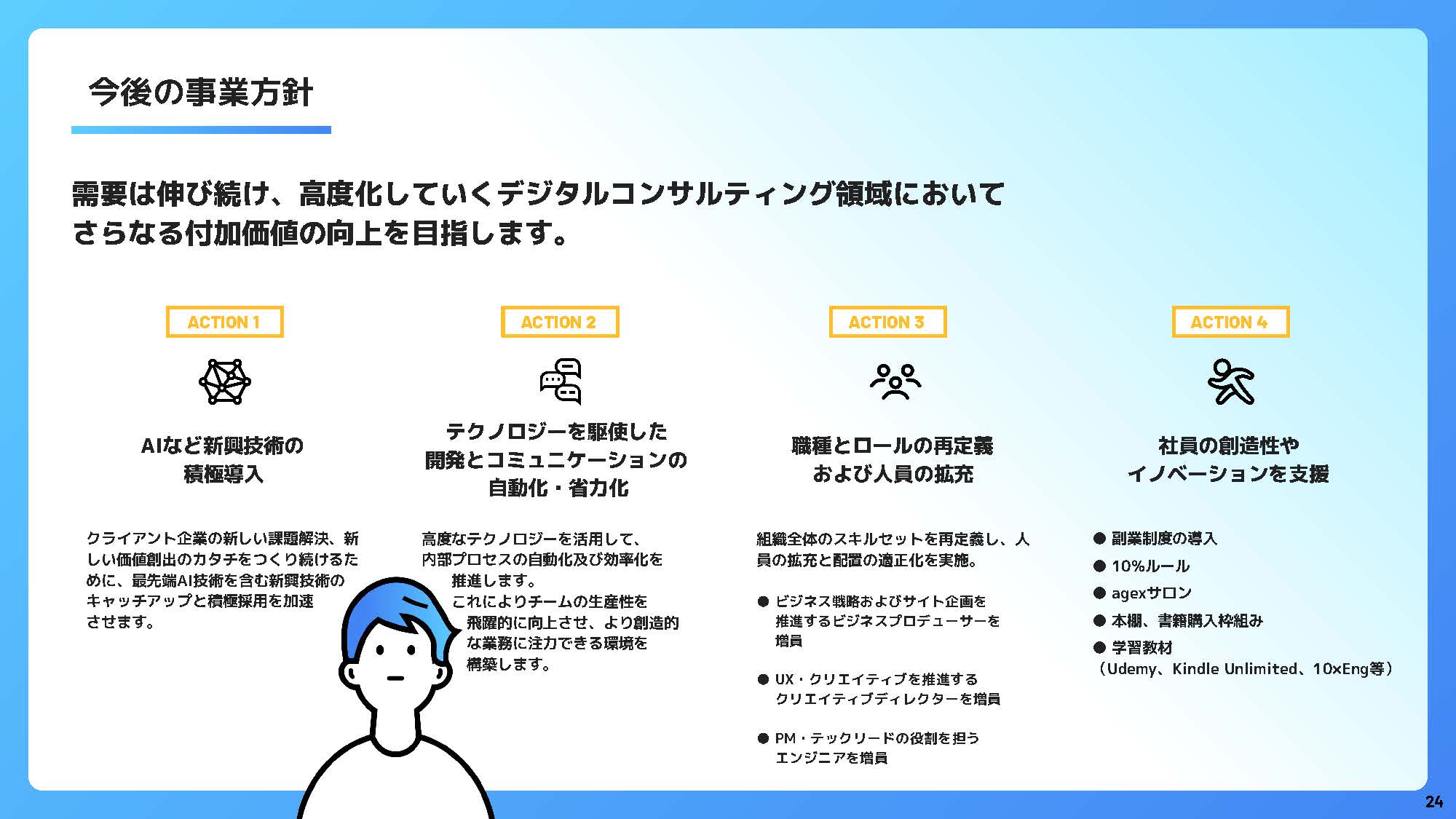 まずはこちらの資料をご覧ください。 エイジェックスデジタルストラテジーズの価値観、大切にしているもの、目指すところをまとめたスライドです。